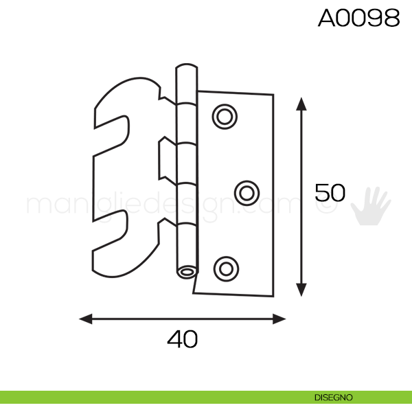 Cerniera a libro regolabile ali zancate 50x40 mm in ottone articolo A0098.
