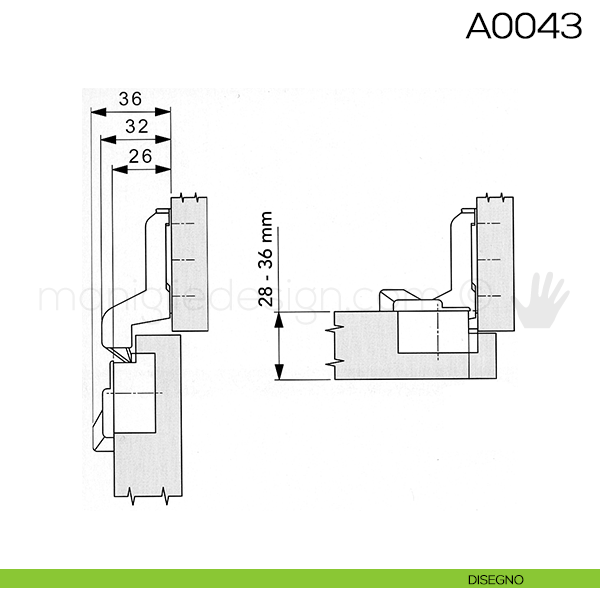 Cerniera Mepla per ante con battuta apertura 90° scodellino foro 35 mm.