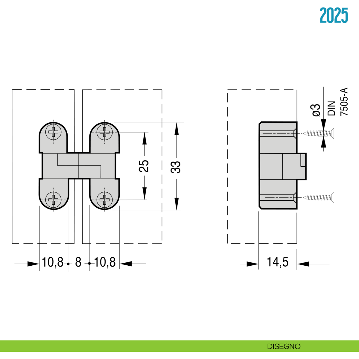 - 1 pezzo cerniera a scomparsa