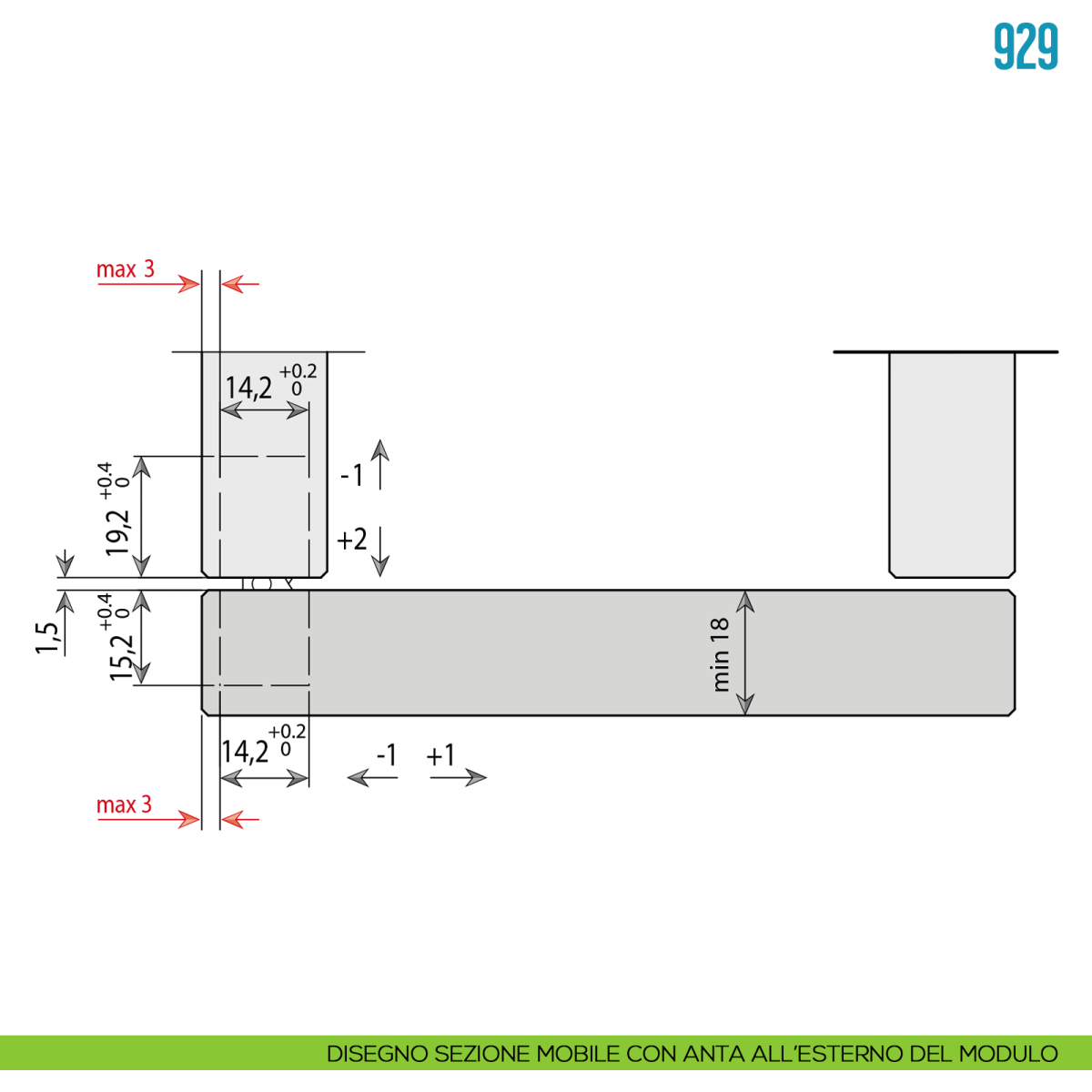 - Regolazione laterale: -1 mm + 1 mm