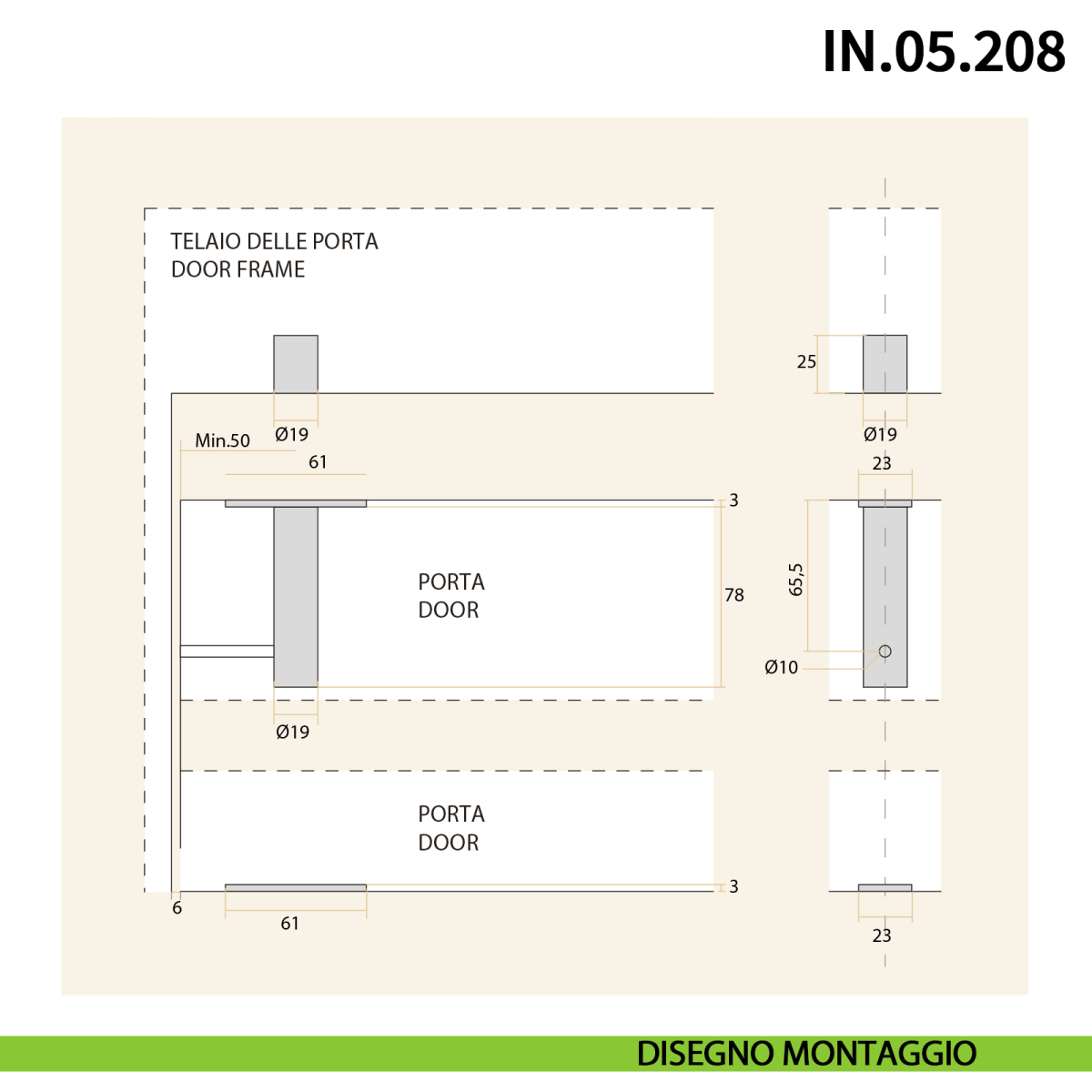 - Spessore della porta: minimo 35 mm / massimo 50 mm