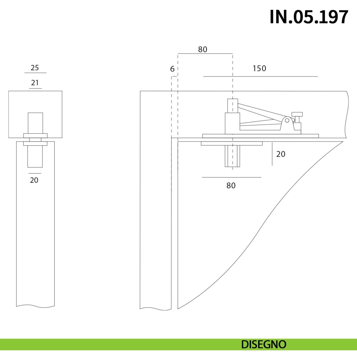 Cerniera a scomparsa per porta a bilico JNF IN.05.207 pivot con rotazione a 360° portata 200 kg