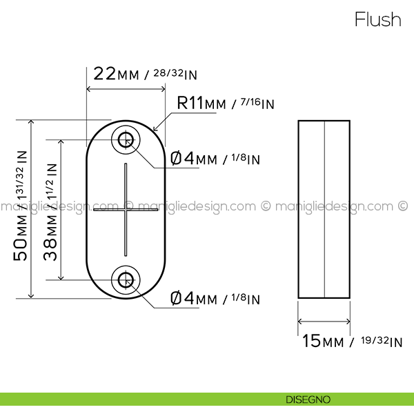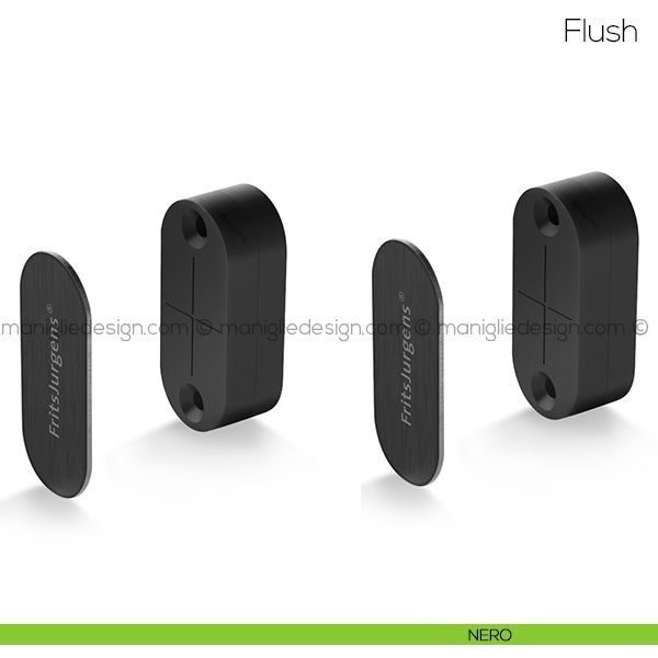 Flush FritsJurgens è una chiusura magnetica costituita da due potenti magneti che, installati rispettivamente nella parte inferiore della porta e sulla parete (o porta), ad essa adiacente, consentono il perfetto allineamento reciproco tra le configurazioni. A prescindere da peso e dimensioni della vostra porta pivot, FritsJurgens Flush ne potenzia la posizione di chiusura a 0°: il risultato è un impeccabile filo parete.