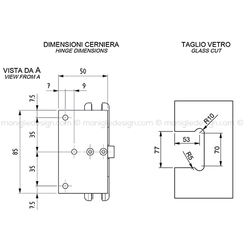 Il catalogo di cerniere per vetro Maniglie Design