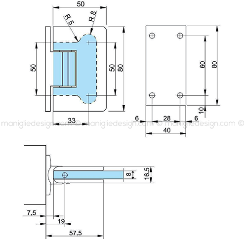 Il catalogo di cerniere cromate per box doccia Maniglie Design