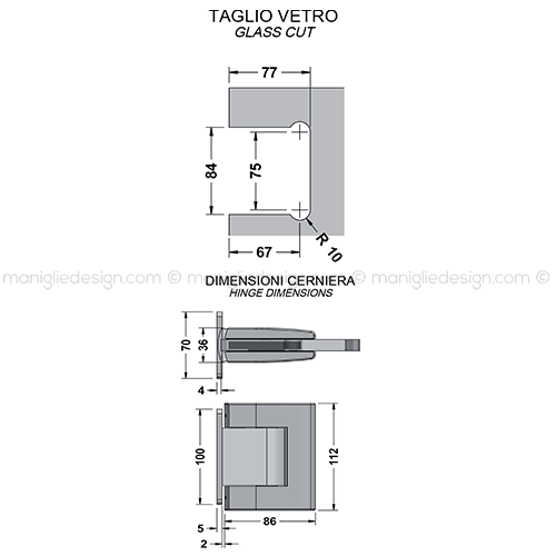 Il prezzo del prodotto è riferito alla singola cerniera. La cerniera è testata 500'000 cicli.