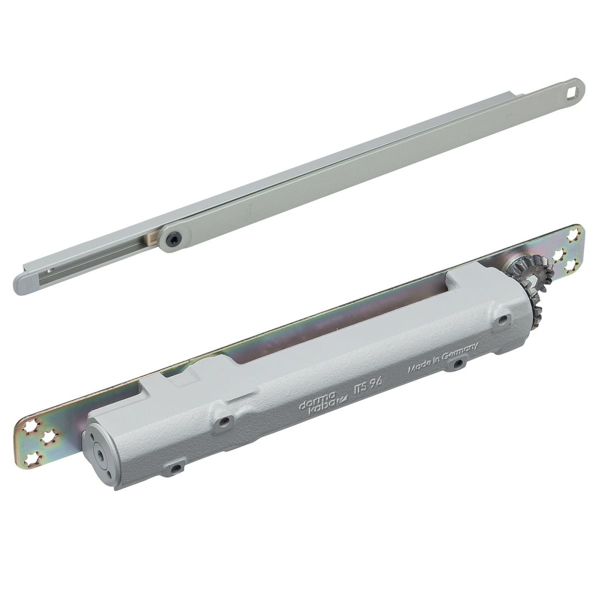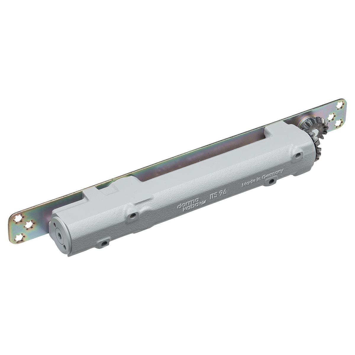 Chiudiporta a scomparsa Dormakaba ITS 96 con albero a camma, forza di chiusura EN 2-4, comprensivo di braccio a slitta senza dispositivo di arresto.