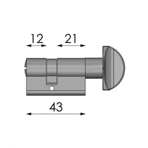 Cilindro 43 mm taglio vite e nottolino per serratura porta in vetro Comit Glass art. CLD003.
