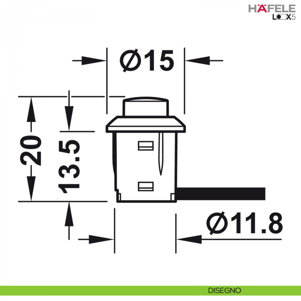 Interrutore a pulsante Hafele Loox, funzione di commutazione on/off, finitura nera.