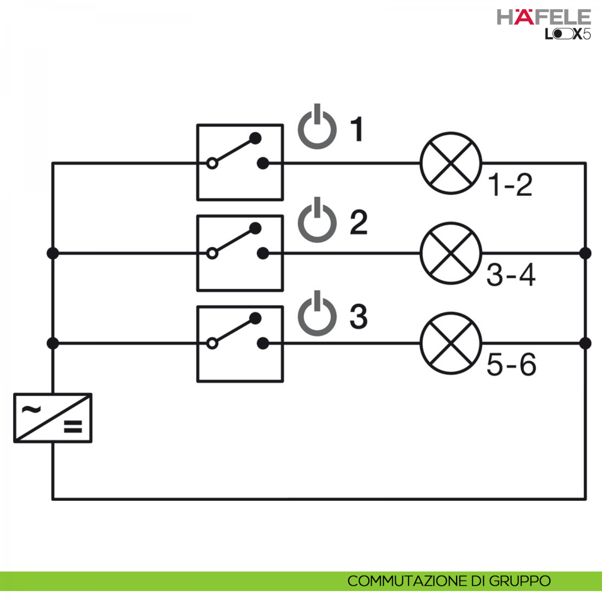 Distributore a 6 vie per LED monocromatico Hafele Loox5 24 V Box to Box funzione di commutazione per 3 dispositivi di accensione