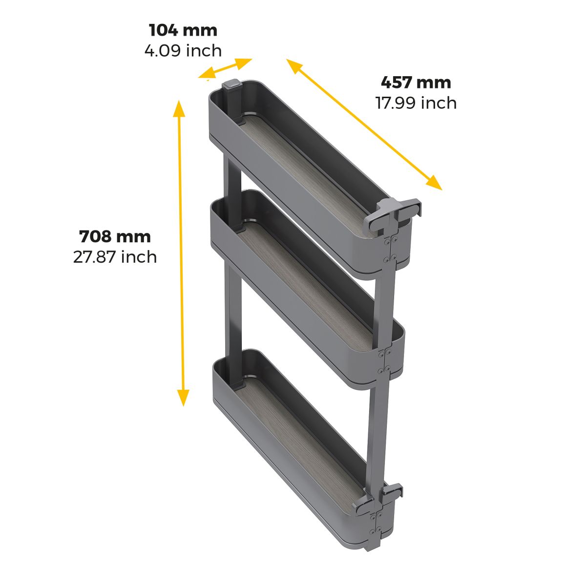 Realizzato in acciaio resistente con finitura grigio antracite e cesti con base in melaminico effetto legno, unisce durata ed eleganza, aggiungendo un tocco moderno che valorizza il design di qualsiasi cucina.