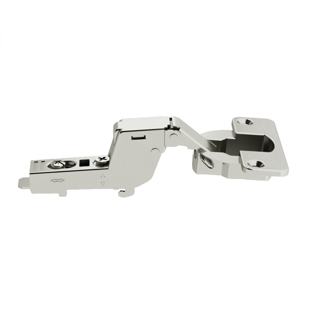 Cerniera Hafele Metalla 310 A/SM 95°, montaggio ad angolo, per ante profilate con spessore fino a 26 mm, con ammortizzatore di chiusura, da avvitare, schema di foratura 57/7,5 mm, finitura nichelata.