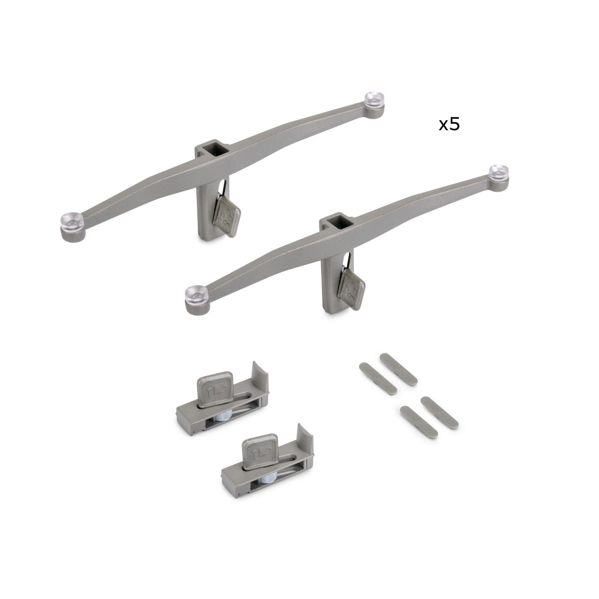 Emuca Lotto di Reggicristalli per 5 ripiani in vetro per la struttura Zero, vetro non incluso, Zama, Verniciato grigio pietra