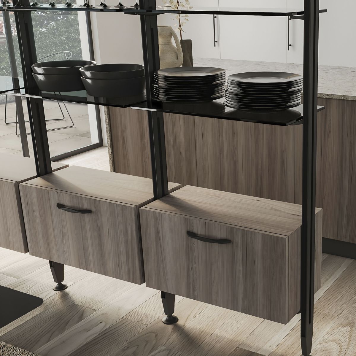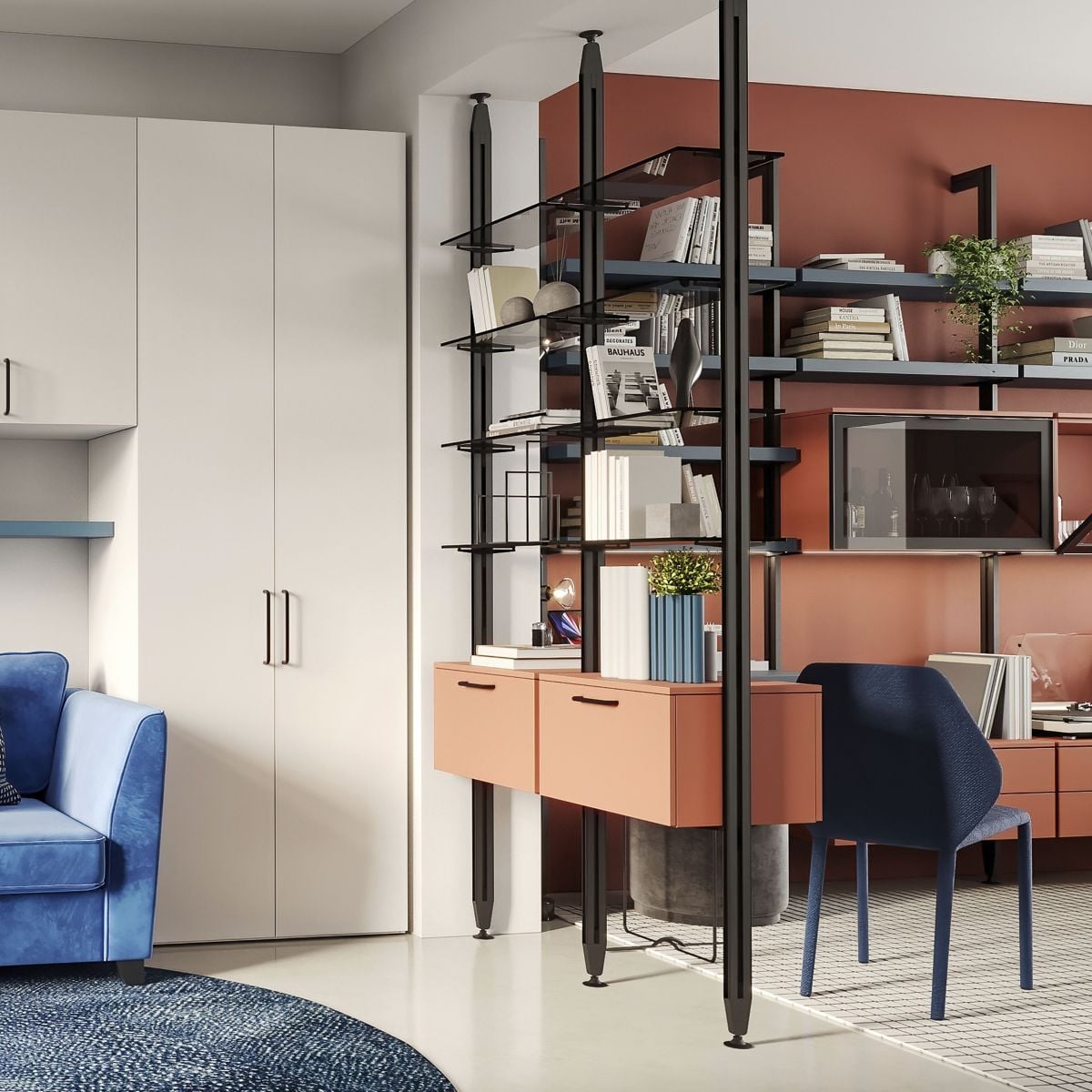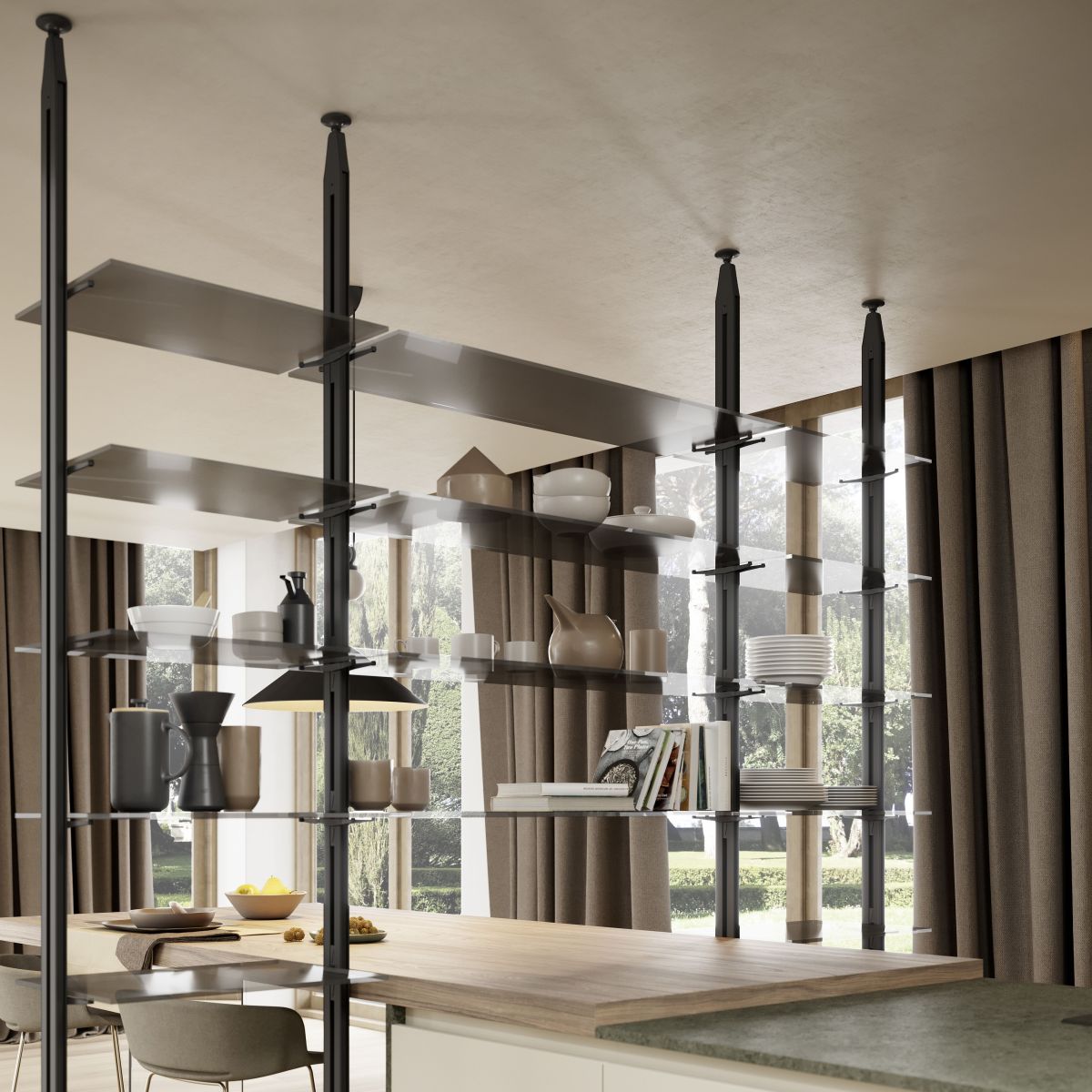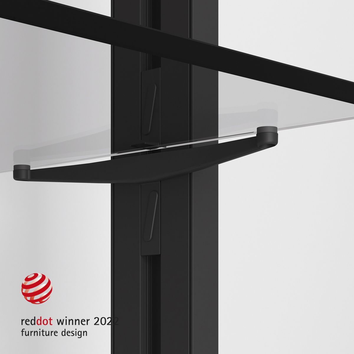 Il suo design si adatta a tutti i tipi di ambienti e stanze: casa, camerini, uffici e negozi. Combinate gli accessori con i profili per creare la vostra composizione ideale: ripiani in legno o vetro, moduli o piccoli armadi e barre sospese.