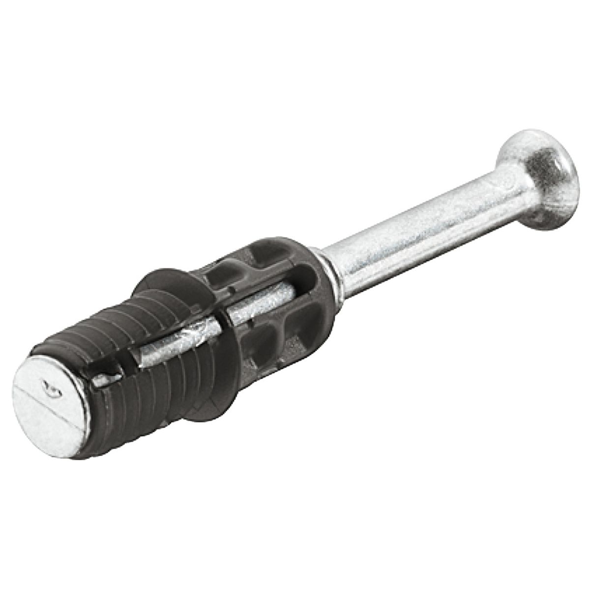 Perno ad espansione Hafele Minifix C100, per foratura diametro 10 mm, per spessore legno a partire da 15 mm, in pressofusione di zinco, finitura nero e cromato.