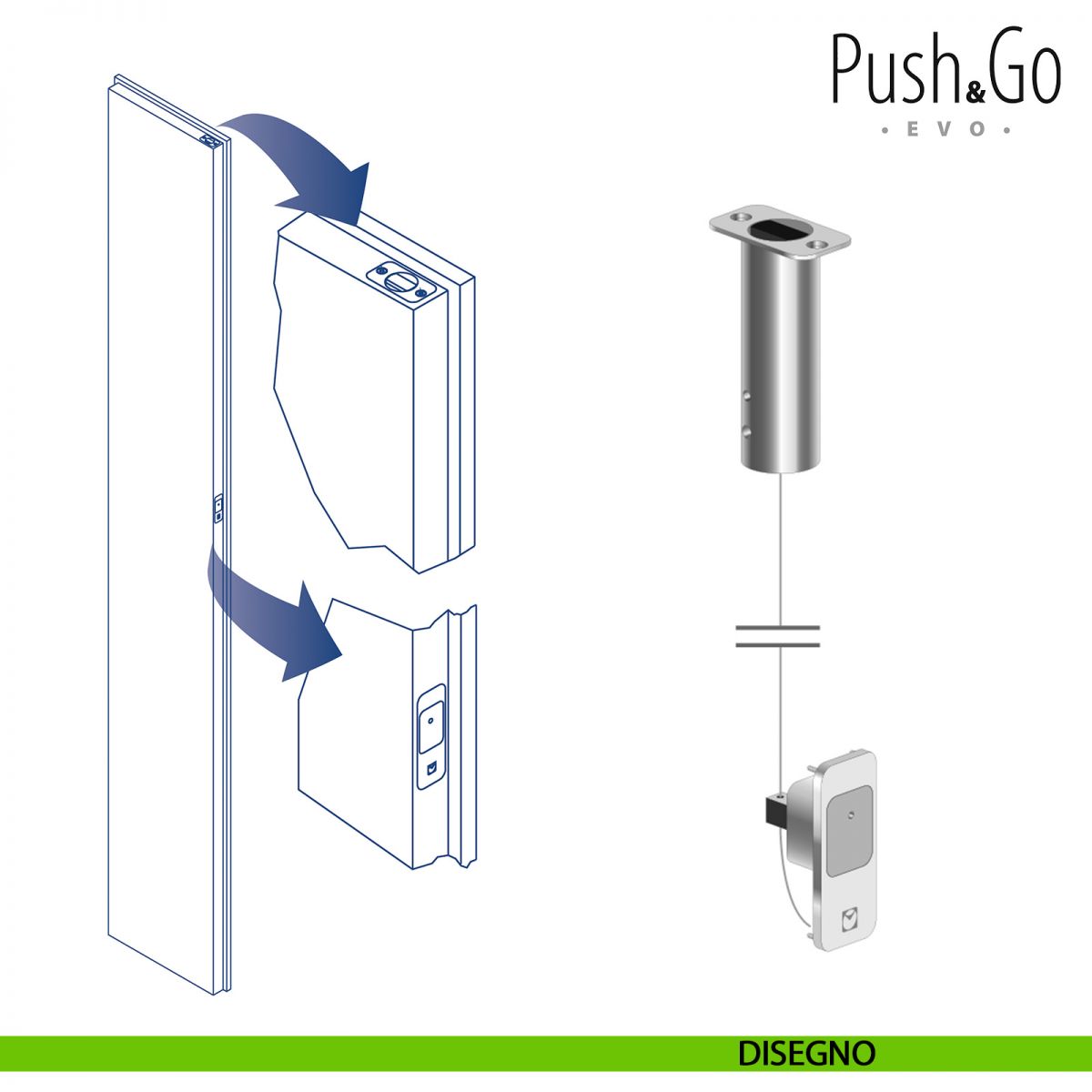 Celegon Push e Go EVO è il nuovo sistema che serve per agevolare lo sblocco dell'anta semifissa presente nelle porte a due ante. Push e Go EVO permette di sbloccare l'anta semifissa semplicemente premendo il pulsante. La chiusura delle porta è garantita dal sistema magnetico invisibile, semplicemente accompagnando l'anta in posizione. La funzionalità e la semplicità di utilizzo sono particolarmente evidenti in ambientazioni dove la porta a doppia anta è movimentata con frequenza e dove le possibili situazioni di emergenza richiedono operazioni rapide quali: camere di degenza ospedaliera, residenza per anziani e scuole, ambiente residenziali. Rispetto ai tradizionali catenacci, Push e Go EVO Celegon migliora il design della porta e in particolare consente di sbloccare l'anta semifissa anche a persone deboli quali: bambini, anziani o portatori di handicap. Push & Go EVO può essere applicato ad un'altezza di poco superiore a quella dell'incontro della serratura.