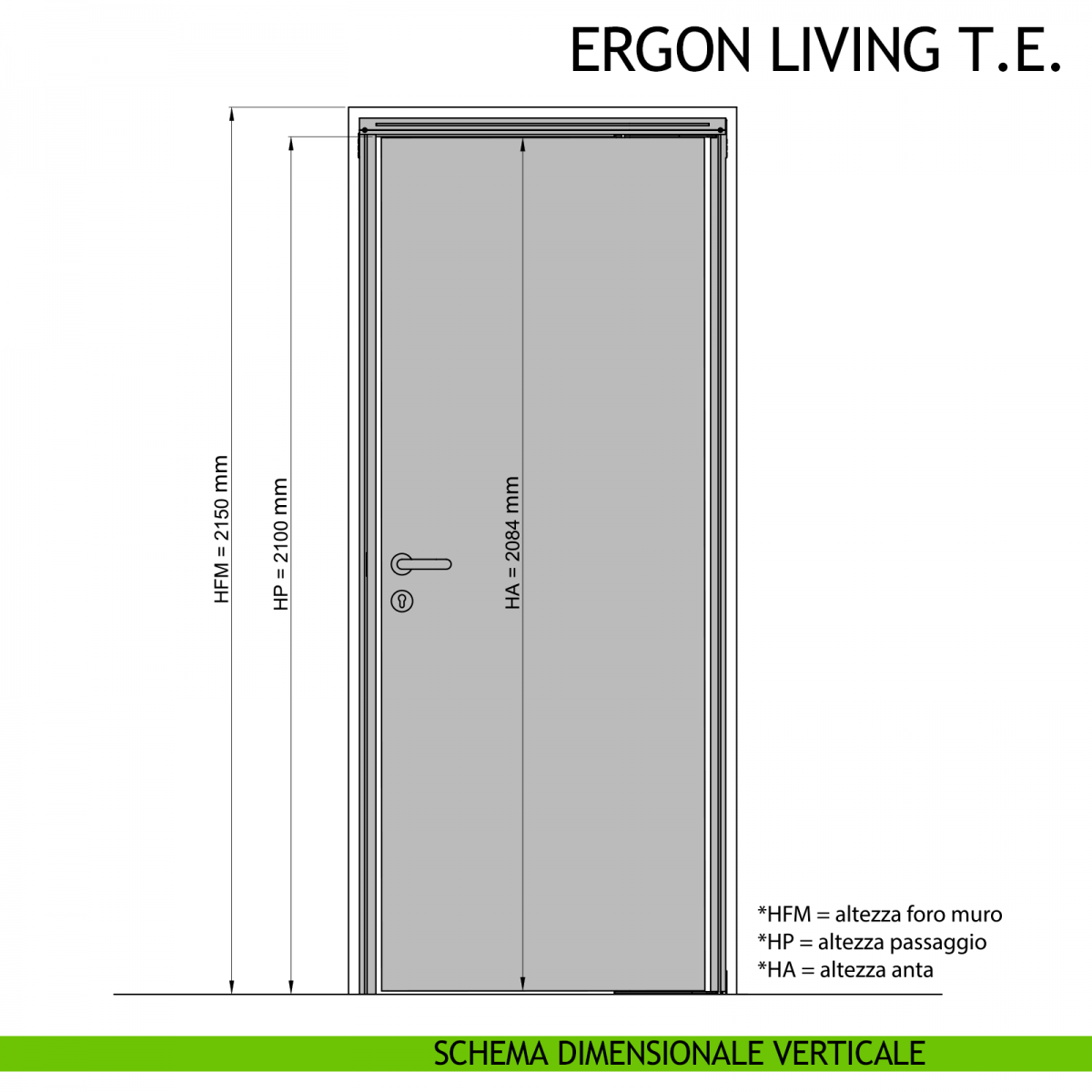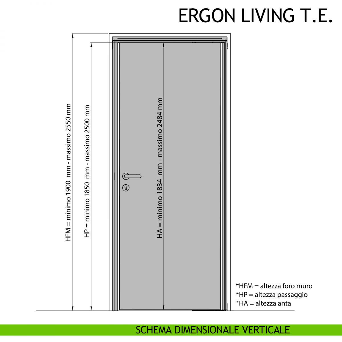 • Altezza foro muro min. 1900 mm/max. 2550 mm / Altezza passaggio min. 1850 mm/max. 2500 / Altezza anta min. 1834 mm/max. 2484 mm
