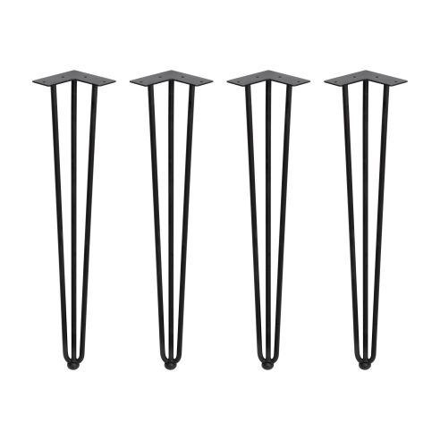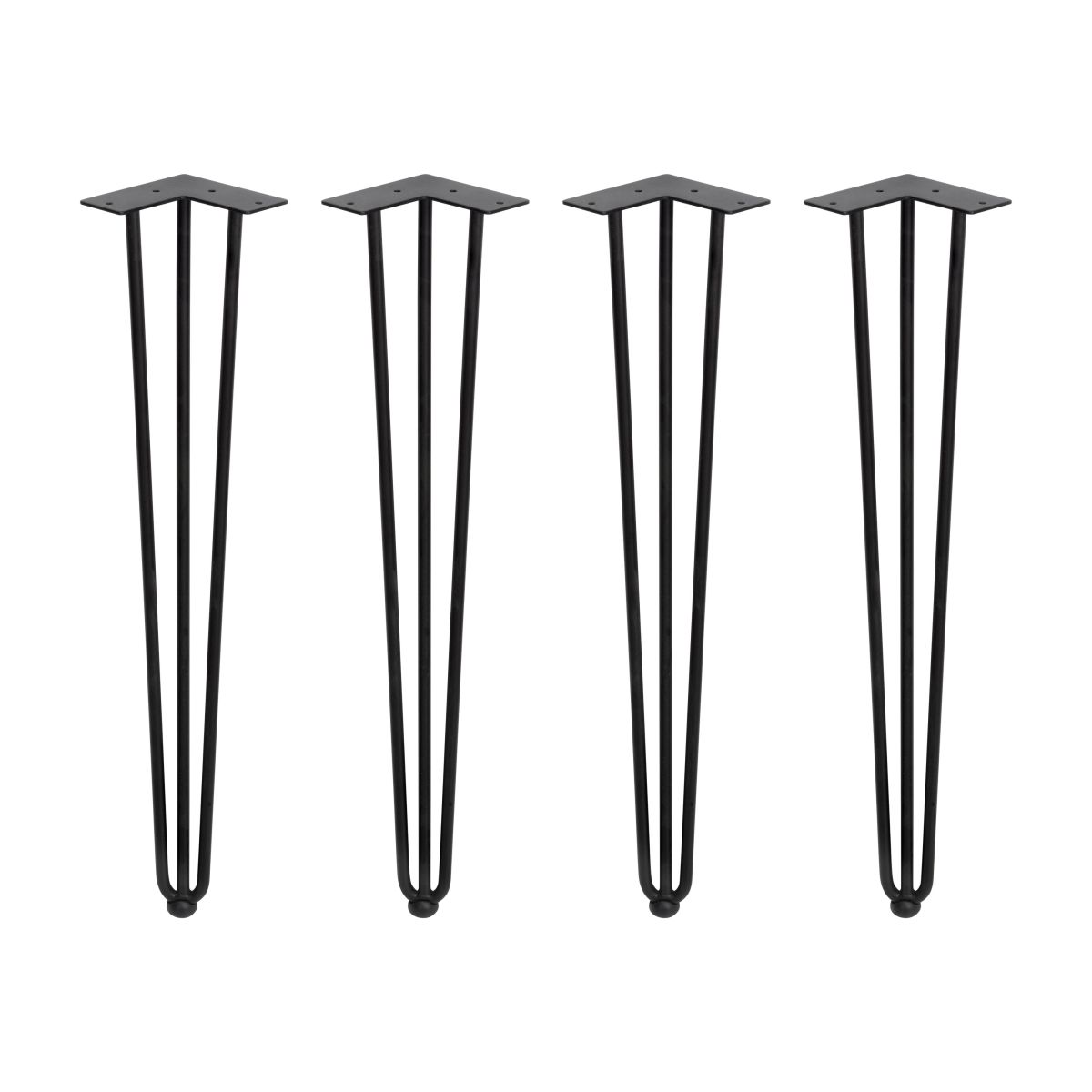 Emuca Lotto di 4 gambe Hairpin a 3 aste per tavolo, altezza 710mm, Acciaio, Verniciato nero
