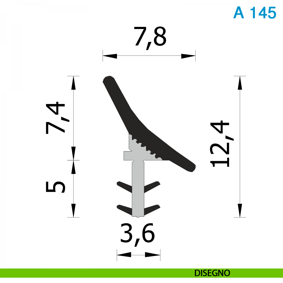 Guarnizione per porta in legno Roverplastik A 145, finitura nera, battuta 8 mm, larghezza fresata 3 mm, profondità fresata 5 mm, realizzata con mescola a base di PVC plastificato, confezione 29 metri (quantità minima da acquistare 29 metri).