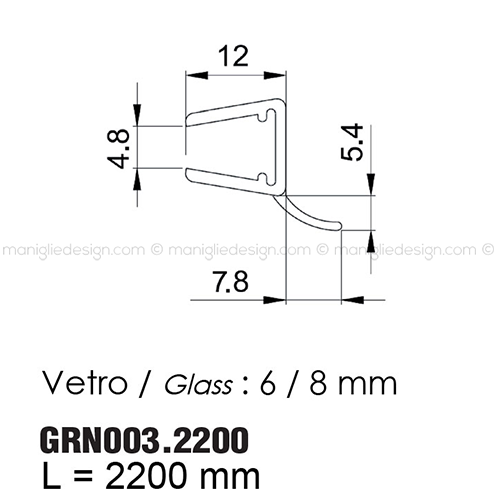 Guarnizione in PVC per vetro spessore 6-8 mm Comit Glass art. GRN003.2200.