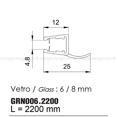 Guarnizione in PVC per vetro spessore 6-8 mm Comit Glass art. GRN006.2200.