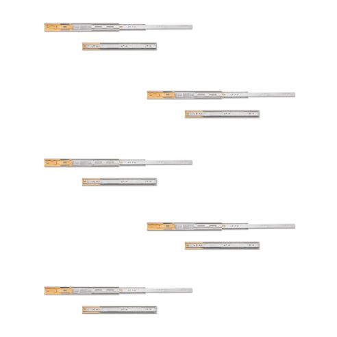 Emuca Kit guide per cassetti, a sfera, 45 x 400 mm, estrazione totale, chiusura soft, Zincato, 5 u.