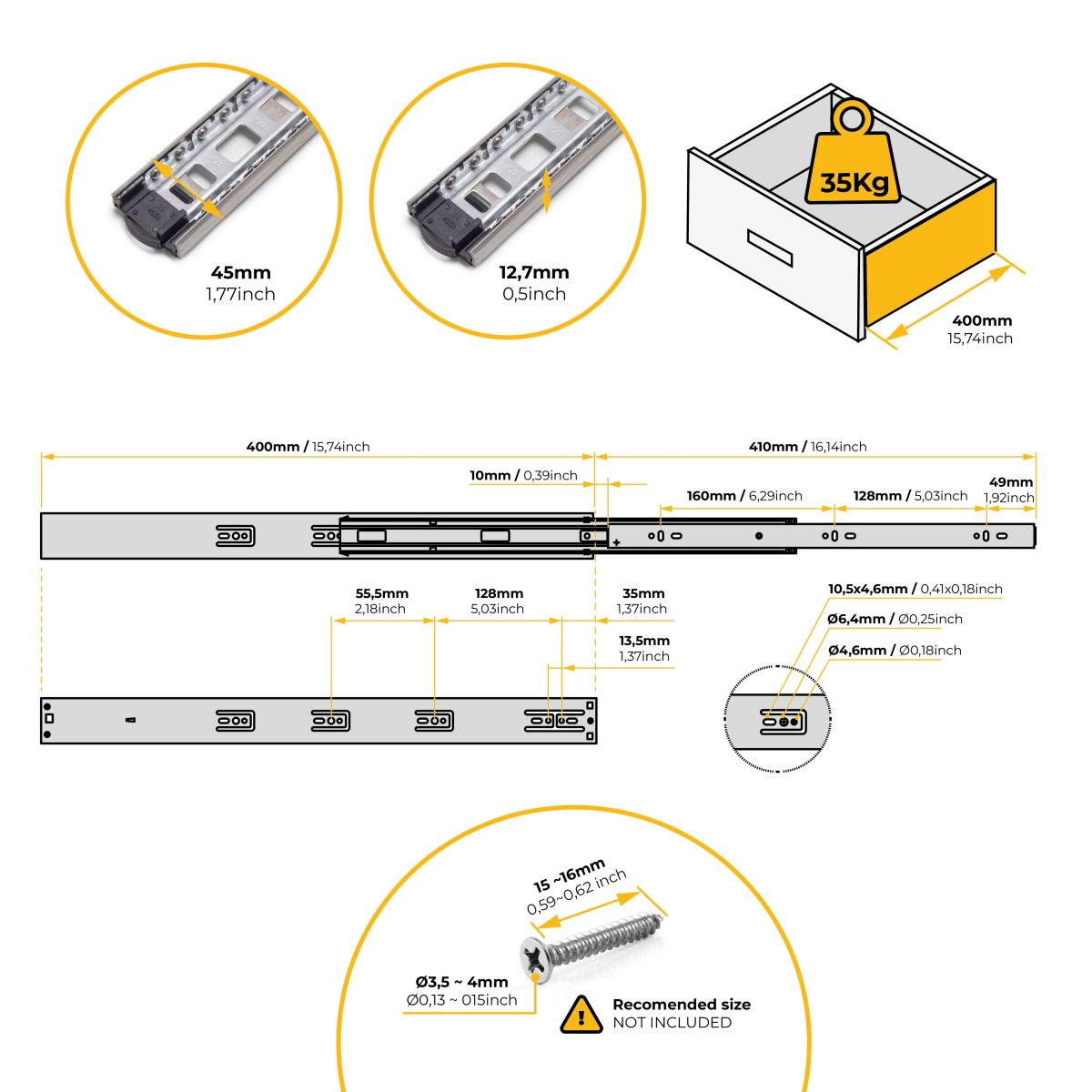 • Altezza 45 mm.