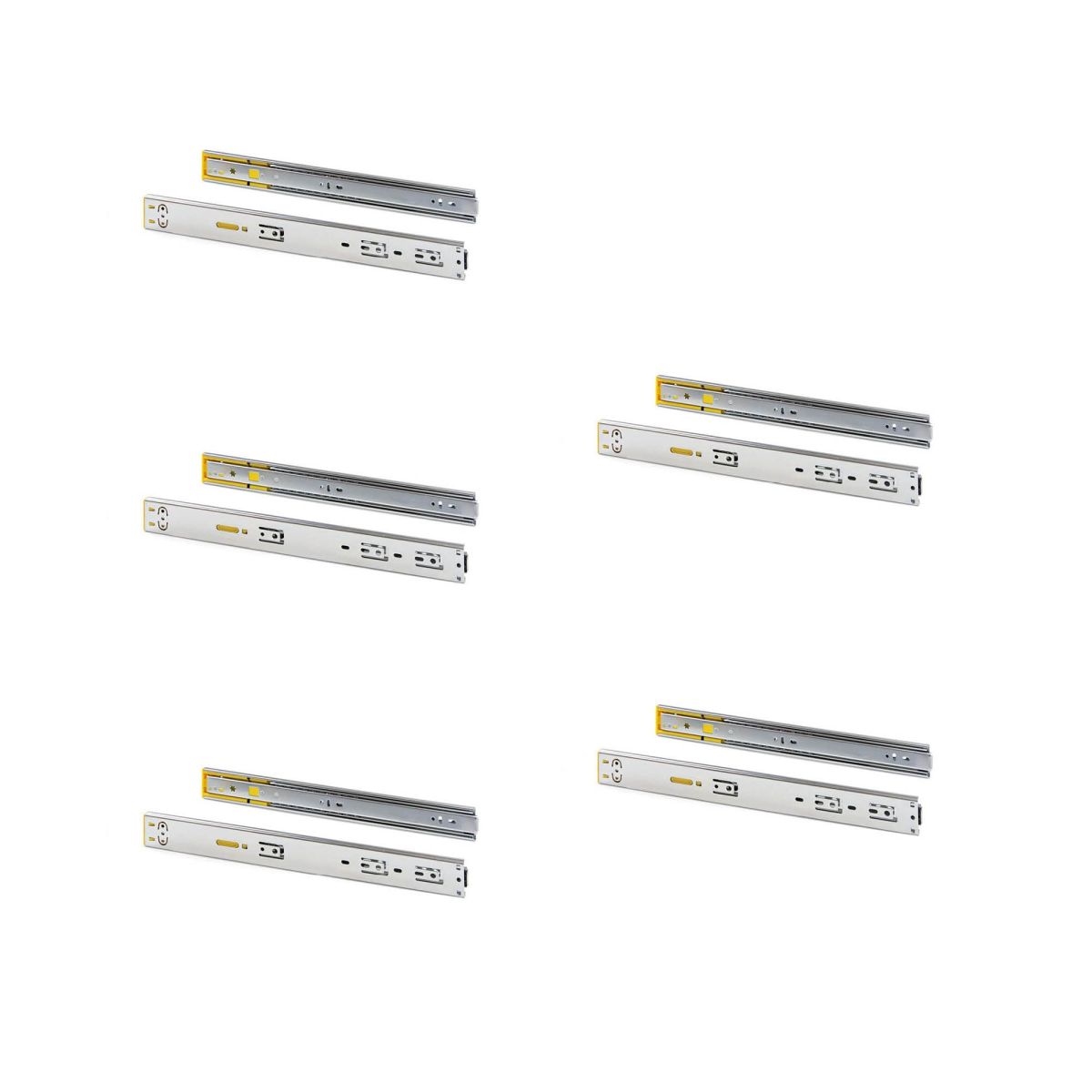 Emuca Kit guide per cassetti, a sfera, 45 x 500 mm, estrazione totale, sistema push, chiusura soft, Zincato, 5 u.