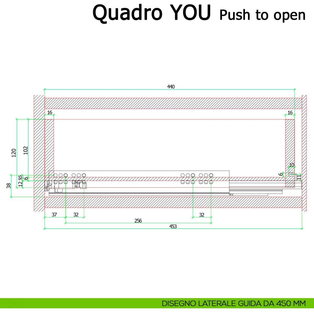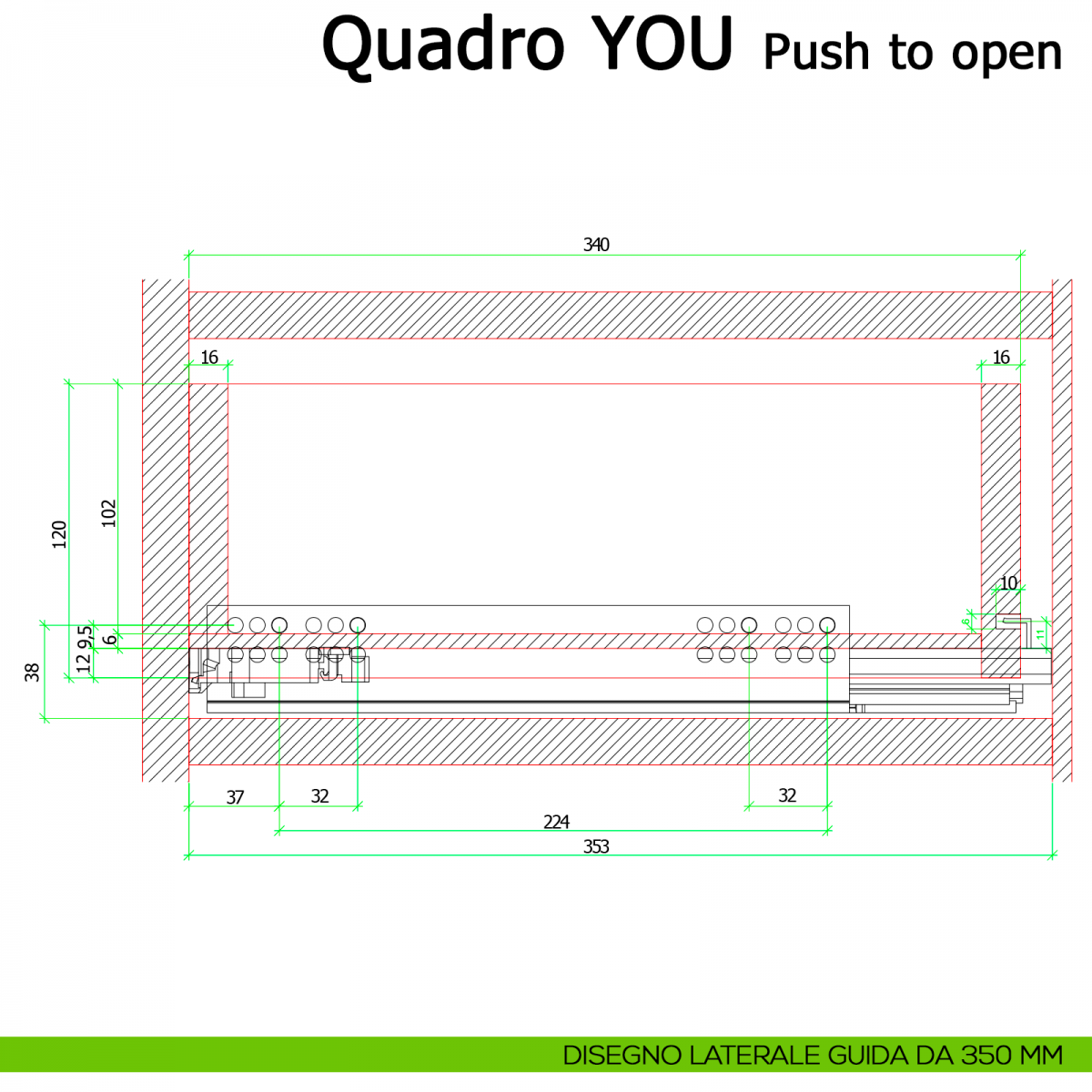 Guida Push to Open per cassetti a estrazione totale Quadro V6 YOU M portata 30 kg.