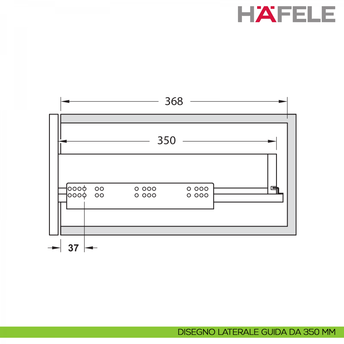 Guida per cassetto ammortizzata Hafele Matrix Runner UM A 30 uscita totale Syncro 3D portata 30 kg