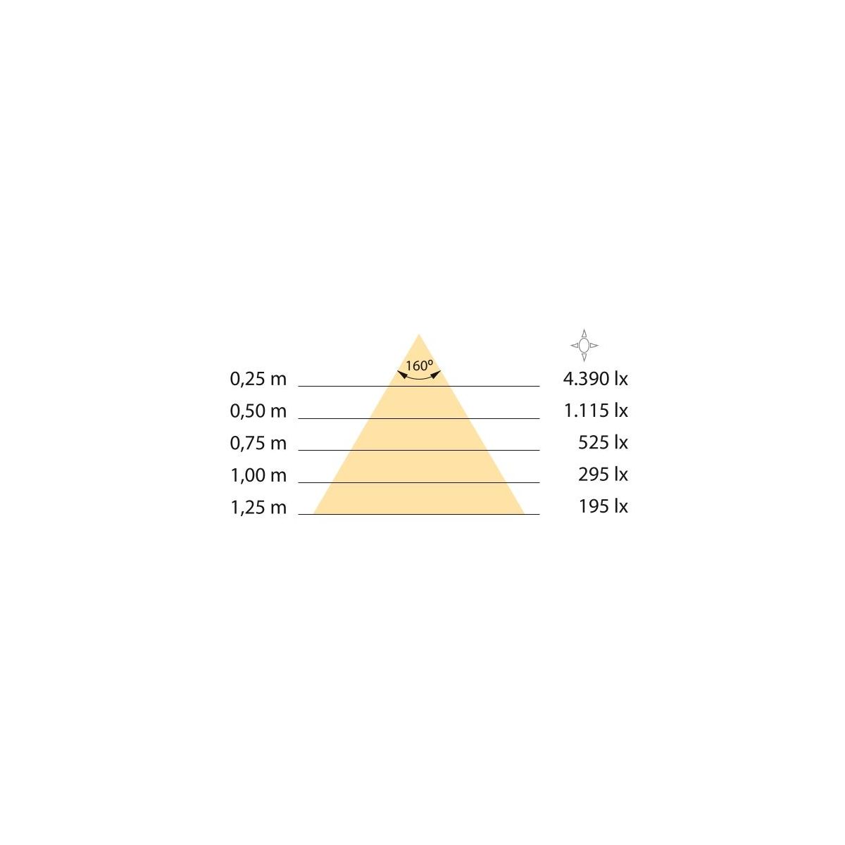 - Angolo d'illuminazione: 160 gradi.