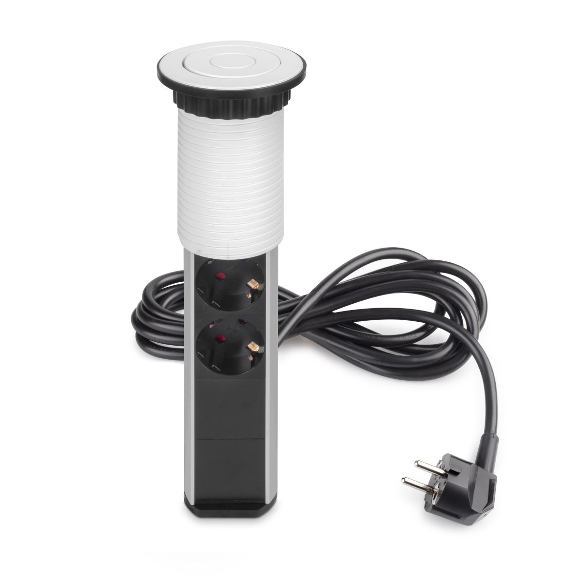 Connettore multipresa o torretta di prese estraibile, progettato per apportare funzionalità con la sua completa integrazione nell'arredo per la casa e dell'ufficio. E' pensato per essere incassato tanto nei moduli alti come in quelli bassi grazie al suo design di facile estrazione e occultazione manuale. Si adatta perfettamenteo alle scrivanie già provviste di passacavi.