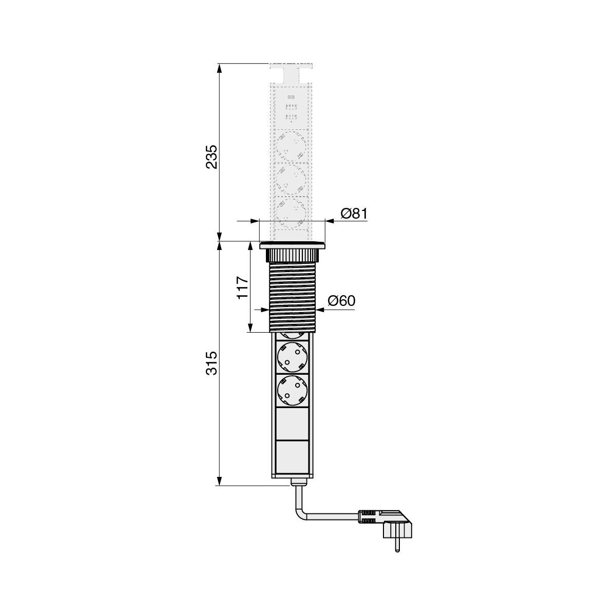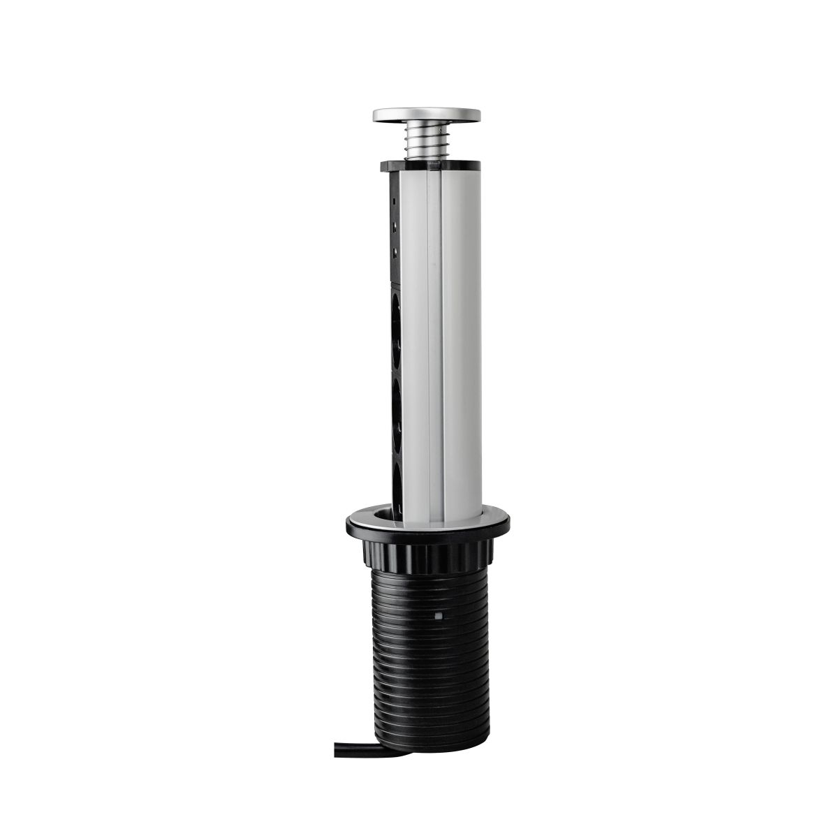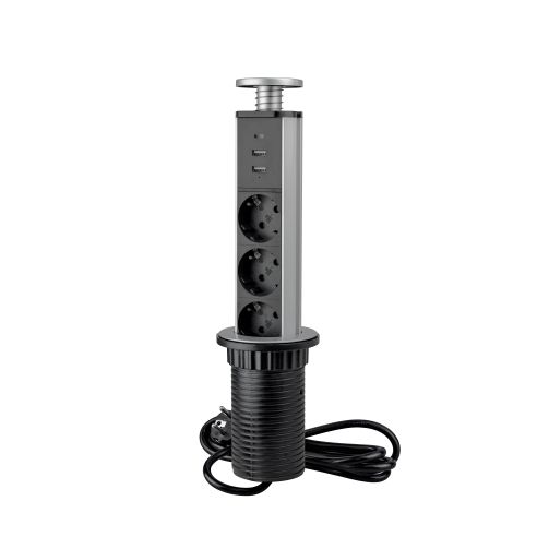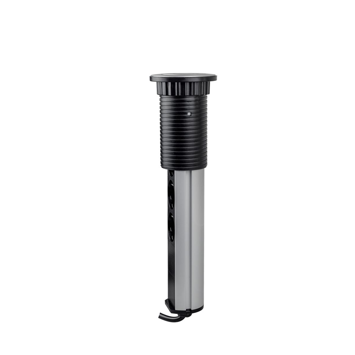 Connettore multipresa o torretta di prese estraibile, progettato per apportare funzionalità con la sua completa integrazione nell'arredo per la casa e dell'ufficio. E' pensato per essere incassato tanto nei moduli alti come in quelli bassi grazie al suo design di facile estrazione e occultazione manuale. Si adatta perfettamenteo alle scrivanie già provviste di passacavi.