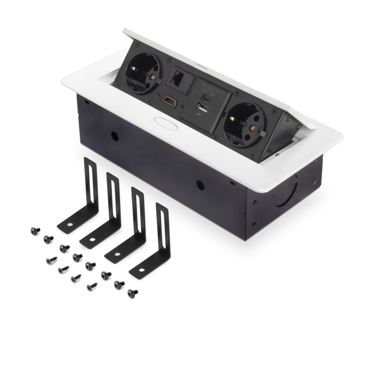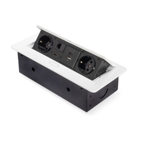 A seconda del modello scelto, dispone didue prese Schuko di tipo F (UE) con una potenza massima consentita fino a 3.000 W - 13 A due connettori USB per caricare dispositivi elettronici 5V DC (1 x 2A / 2 x 1,5A), un ingresso per la rete RJ45 E5 non schermato e un connettore HDMI 2.0.
