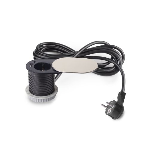 Questo connettore dispone di una presa elettriche tipo F schuko (EU) e di connessioni USB per la ricarica dei dispositivi elettronici. La presa di corrente e il connettore USB restano nascosti dietro un coperchio piatto di acciaio inossidabile che scorre per permettere l’accesso.