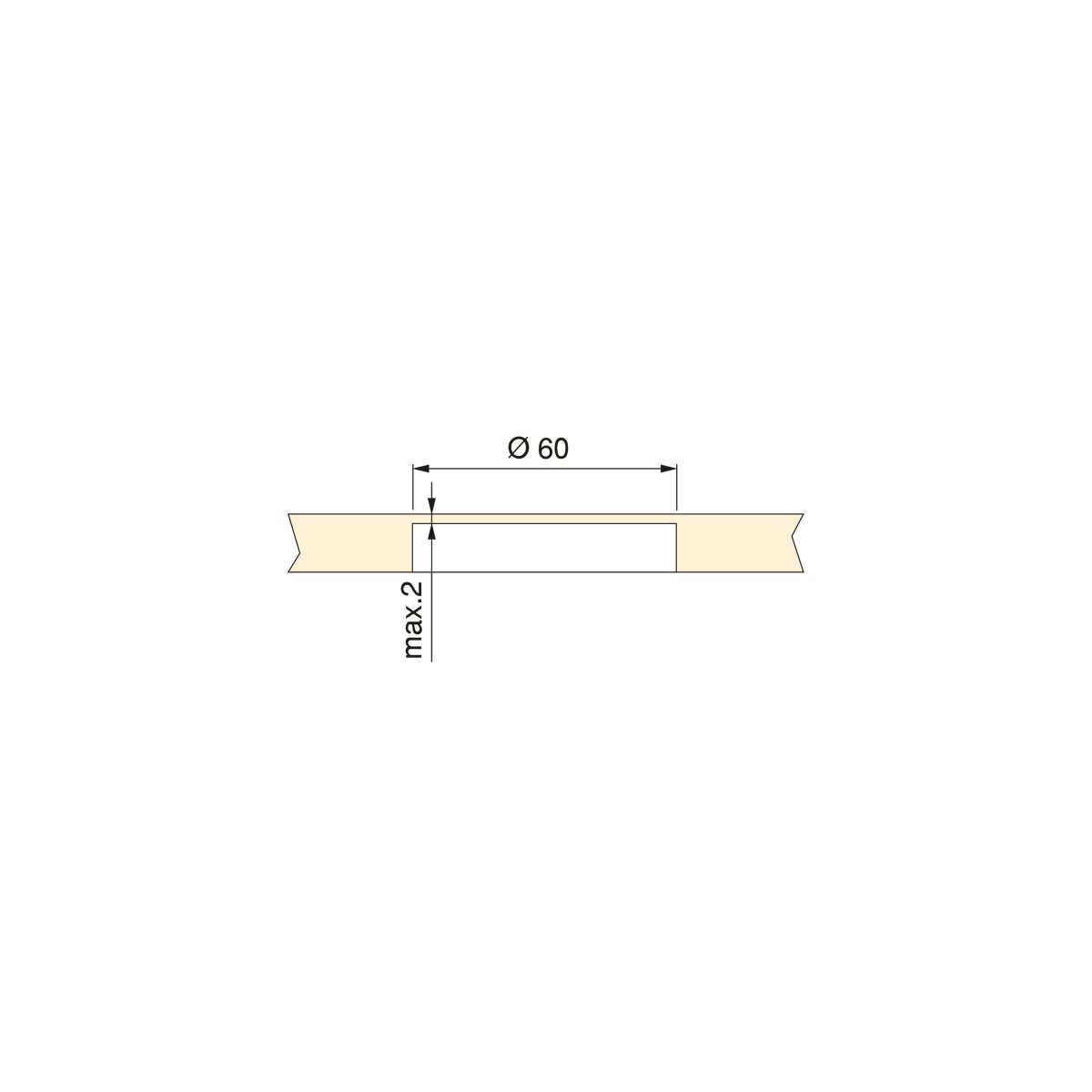 - Per la sua installazione è necessario effettuare una lavorazione di D. 60 mm non passante, per poter incastrare il dispositivo e che la distanza tra il caricatore e il dispositivo non superi i 2 mm.