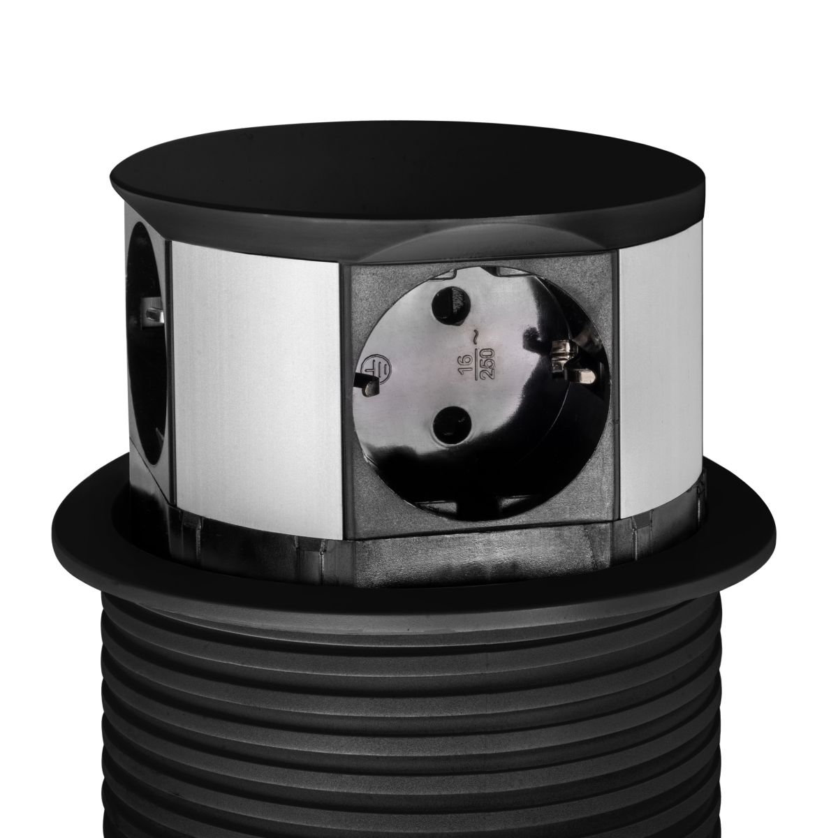 Multiconnettore da incasso in mobili da cucina, ufficio e casa, con estrazione simultanea delle connessioni tramite pressione.