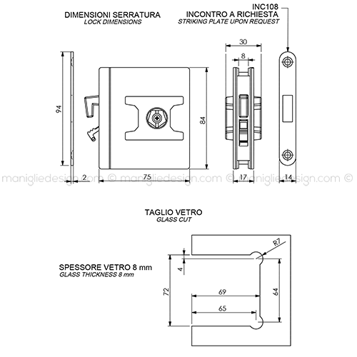 - 1 incontro per doppia porta in vetro