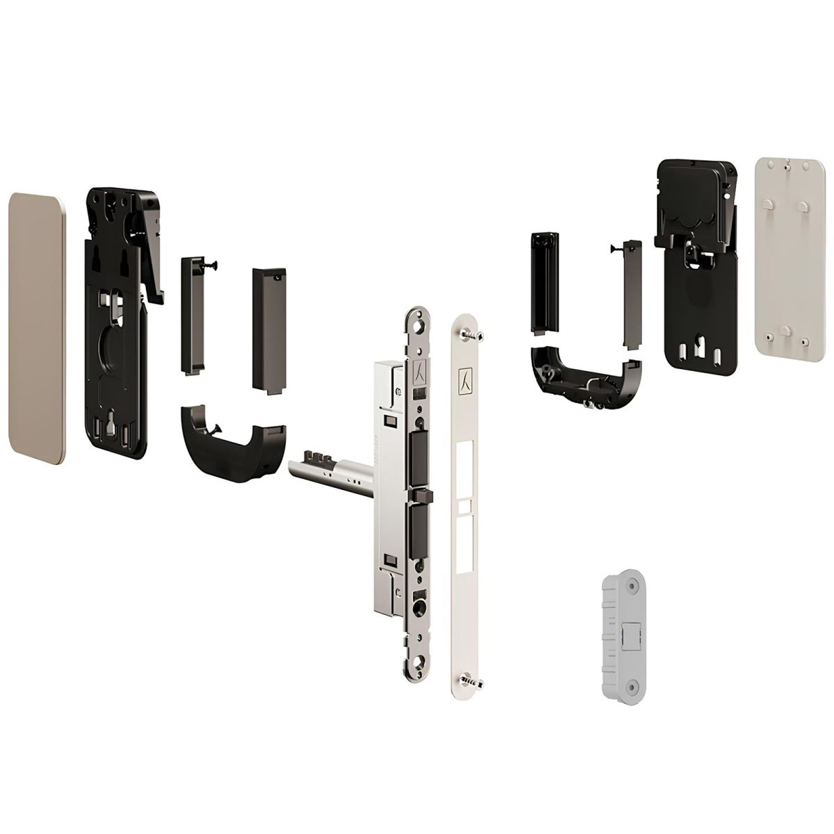 Il frontale della serratura verrà spedito nella finitura selezionata, le cover delle maniglie sono in ABS in finitura neutra, verniciabile nella medesima finitura della porta.