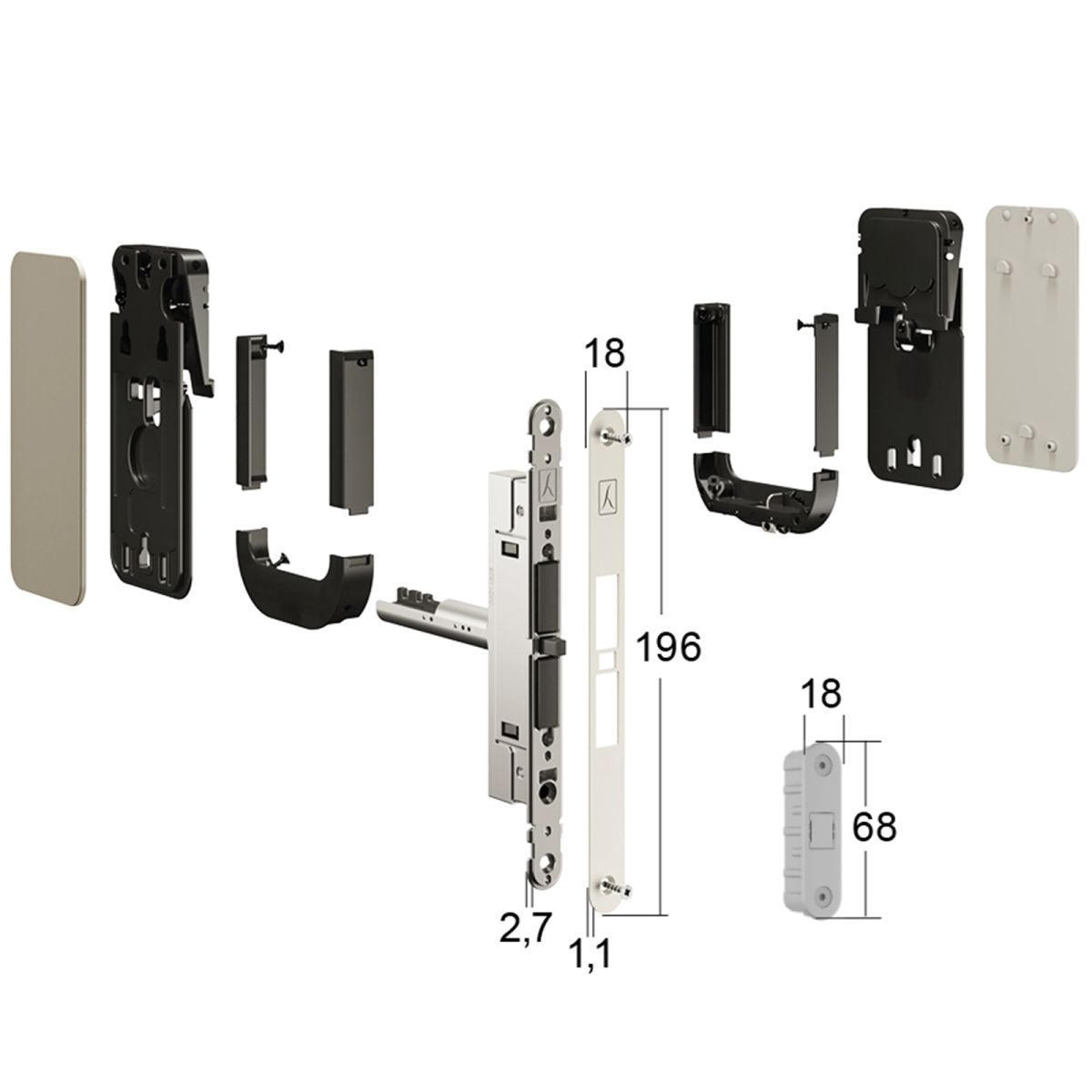 Maniglia invisibile Ghost Bonaiti versione privacy bagno, frontale 196x18 mm, con contropiastra per profilo in alluminio GAL3, modello 311-GAL3.