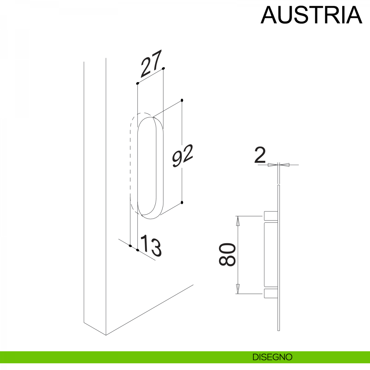 Maniglione per alzante scorrevole singolo cieco con nicchia in acciaio Austria Fimet Inox. Design by Fimet Inox Project.