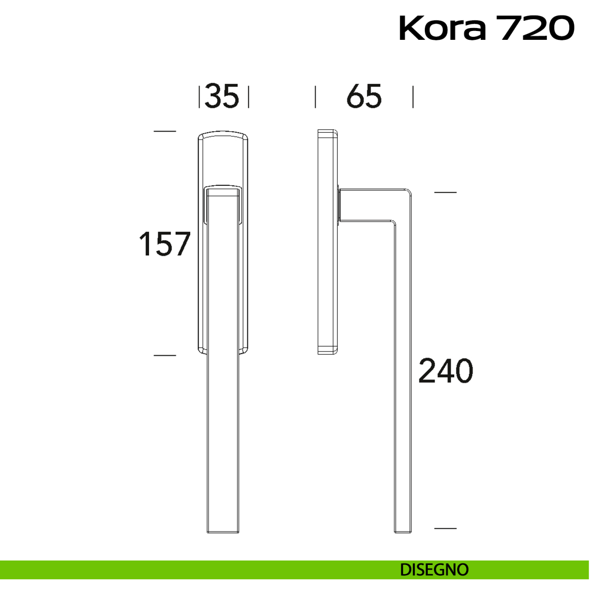 Maniglione per alzante scorrevole singolo cieco senza nicchia Kora 720 Reguitti. Design by Studio Reguitti.