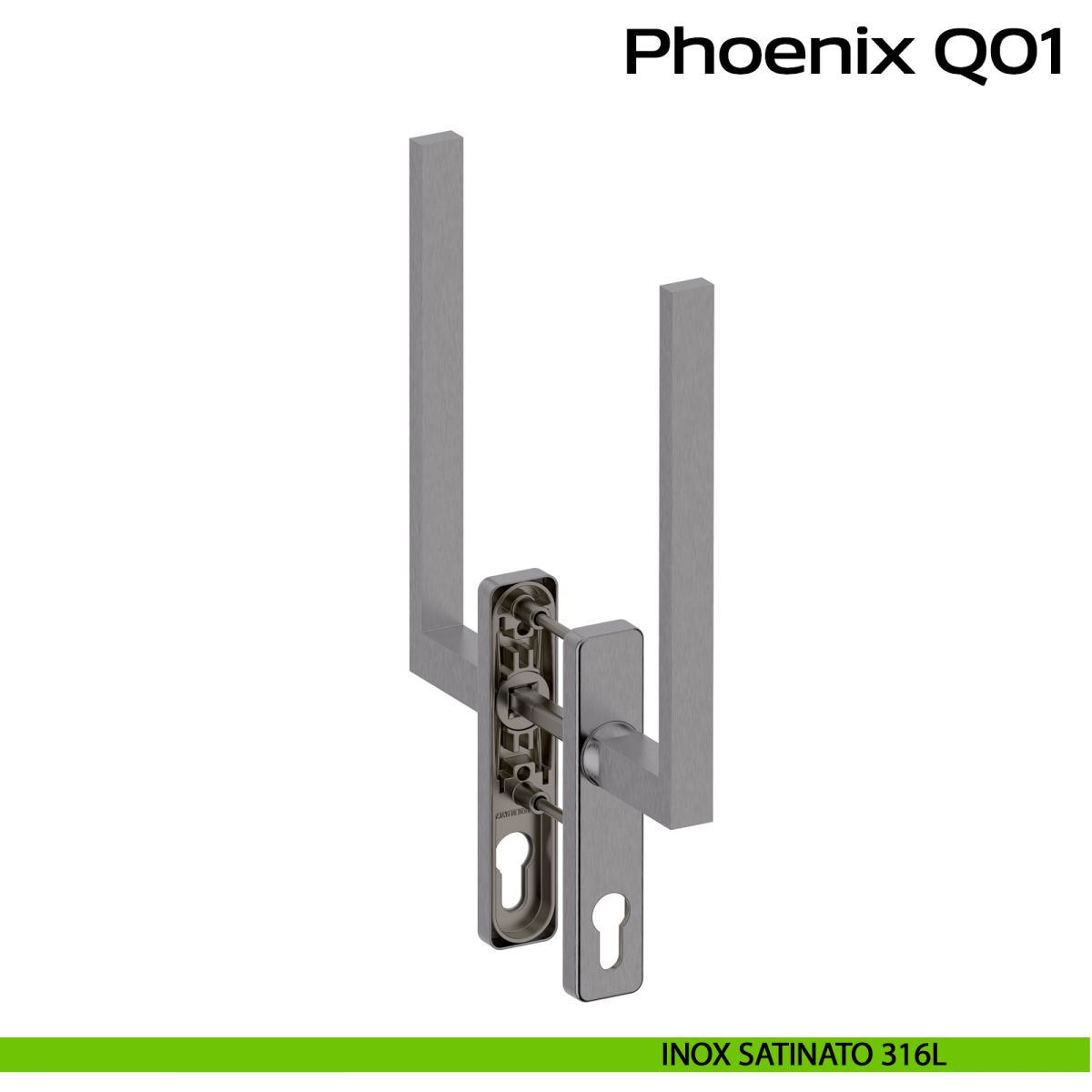 Maniglione per alzante scorrevole accoppiato con placca yale Phoenix Q01 Reguitti Inox. Design by Studio Reguitti Inox.