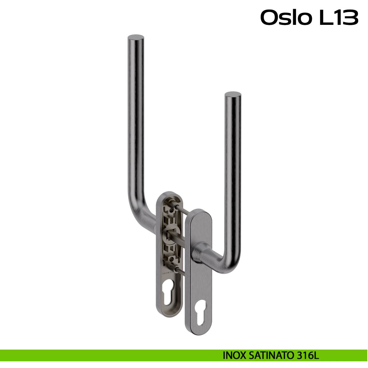 Maniglione per alzante scorrevole accoppiato con placca yale Oslo L13 Reguitti Inox. Design by Studio Reguitti Inox.