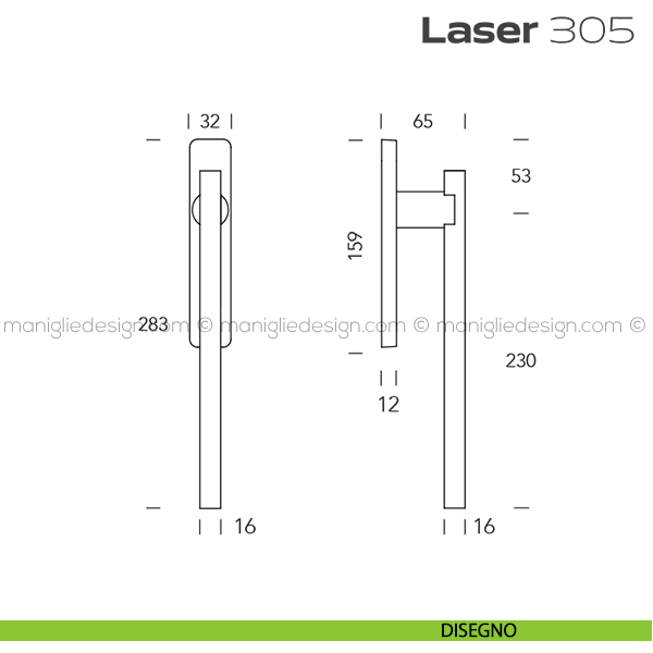 Maniglione per alzante scorrevole 305 Laser accoppiato.