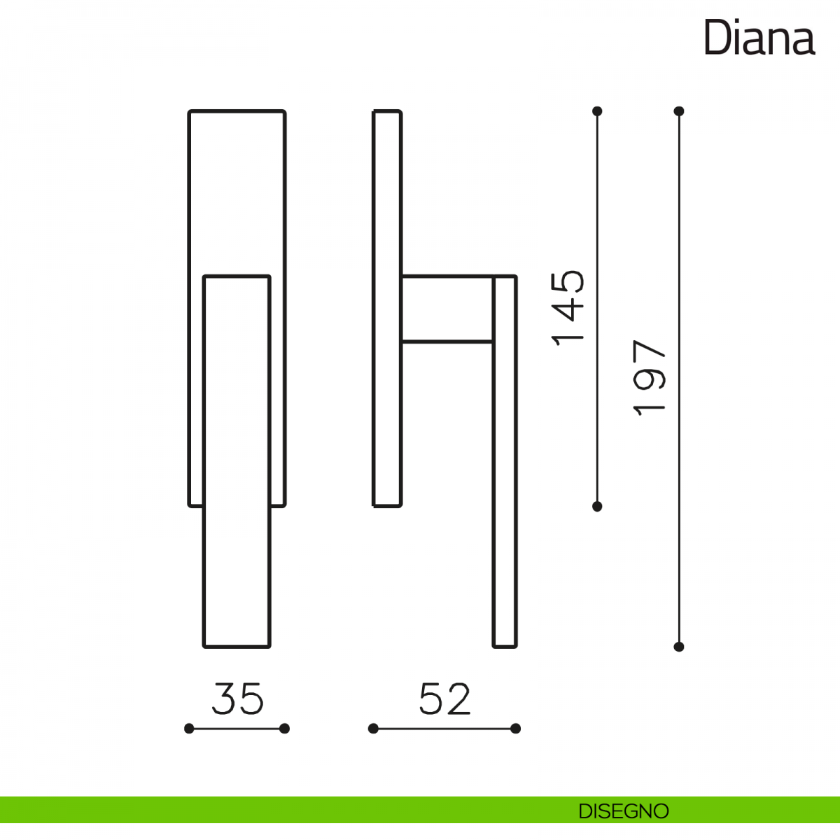 Lo Studio Olivari progetta una nuova serie di maniglie di design per finestre, che porta il nome di Diana. La serie Diana Olivari appartiene alla linea di maniglie in ottone per infissi. Si tratta di un modello innovativo e contemporaneo. Linee squadrate e spigoli dal carattere tagliente le conferiscono un aspetto moderno adatto ad aperture minimali pulite.