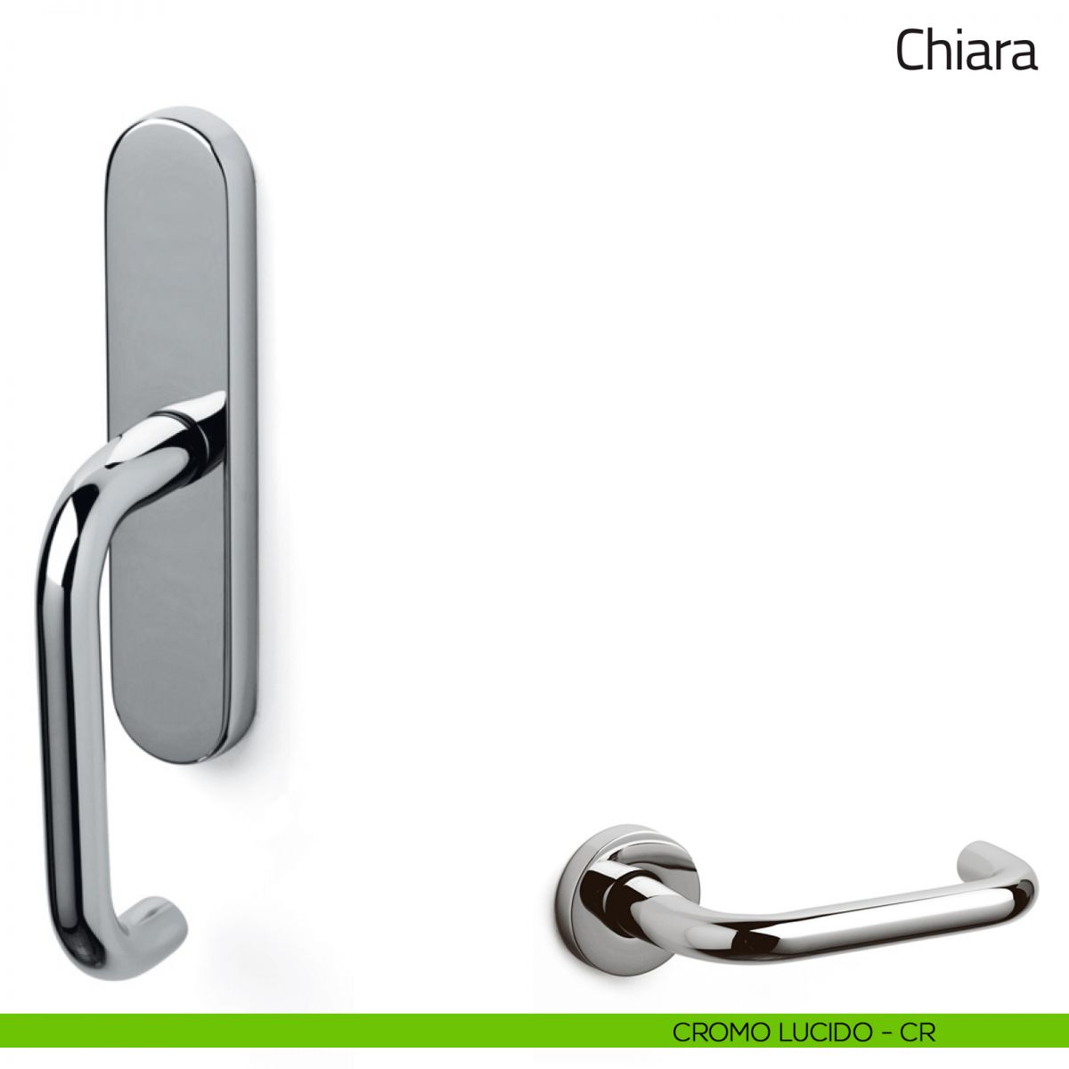 Chiara Olivari viene offerta anche nella variante maniglia per porta e martellina dk. Scopri la gamma completa della maniglia Olivari Chiara per completare con stile il tuo arredamento.
