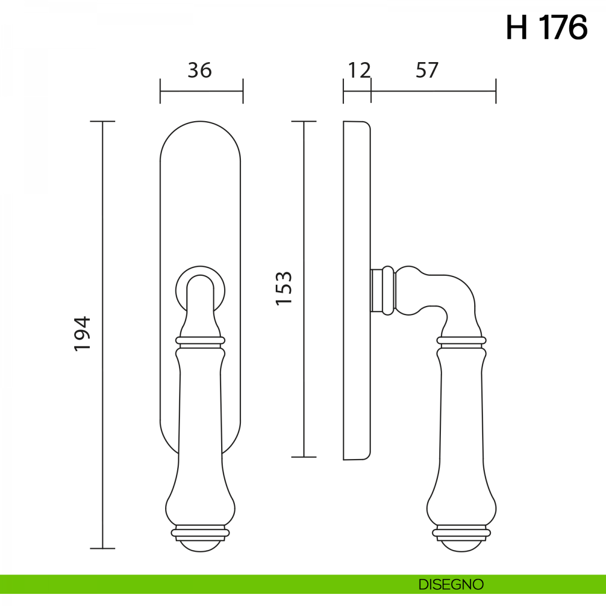 Maniglia per finestra cremonese H 176 Valli collezione Lab.