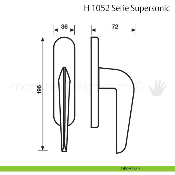 Maniglia per finestra martellina DK H 1052 Valli collezione Fusital