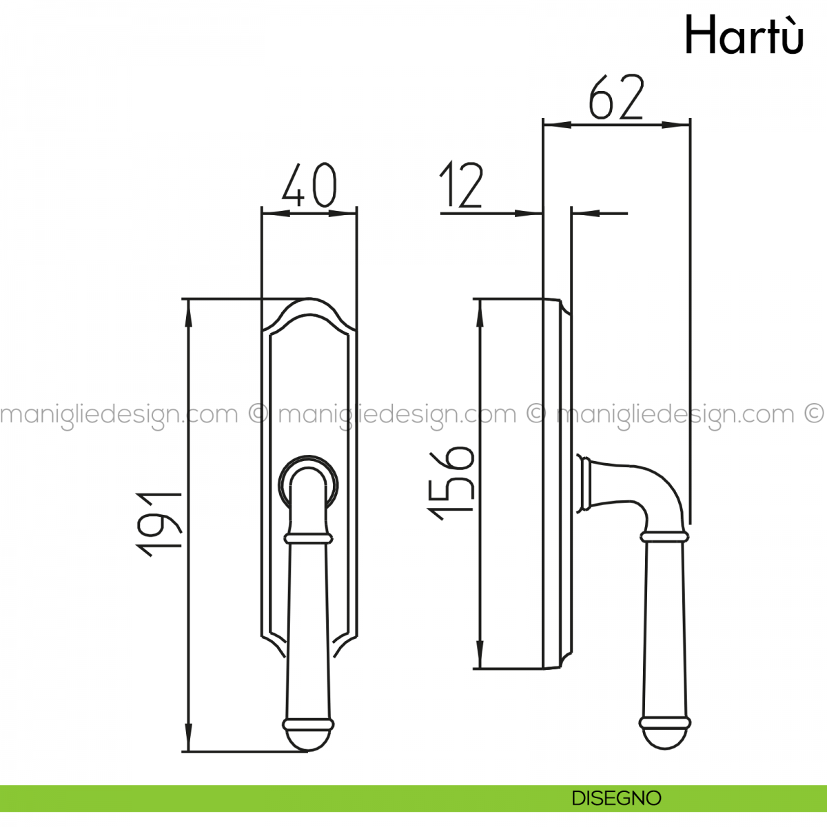 Maniglia per finestra martellina DK Hartù Mandelli.